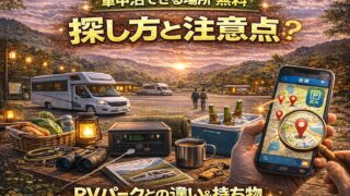 車中泊歴8年のベテランが、無料スポットの賢い探し方と最新の注意点を徹底解説!アイドリング騒音や禁止看板に焦った実体験をもとに、無料とRVパークの違いや「快眠に必要な持ち物3選」も紹介します。失敗したくない初心者は必見です。