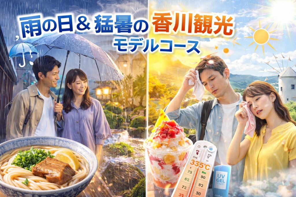 このコースなら、外が豪雨でも猛暑でも、快適に香川を満喫できます。 むしろ「天気が悪かったおかげで、ゆっくり買い物できたね」と言える旅になるはずです。