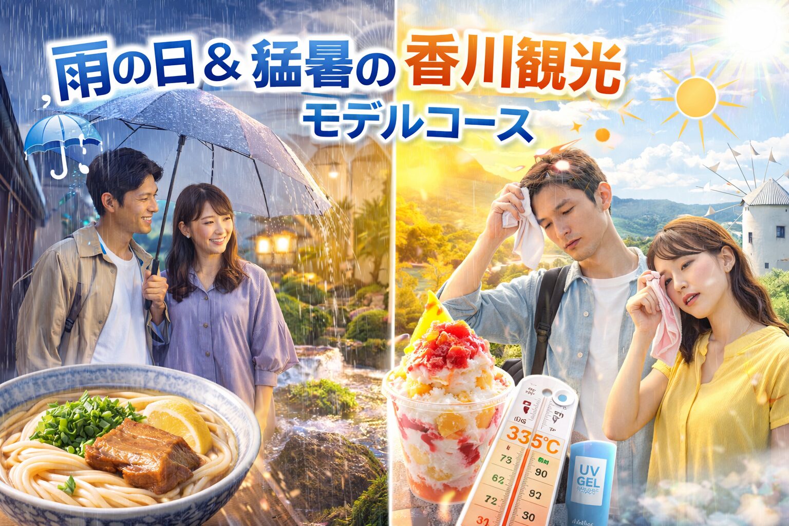 この記事では、雨の日や猛暑日でも「髪を巻いても崩れない」「汗だくにならない」快適さを最優先した、全天候型・香川観光モデルコースを提案しますね。
