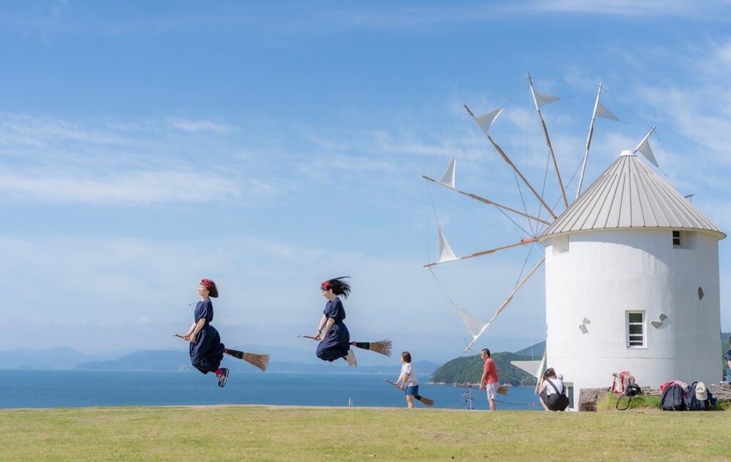 - 撮影スポット: 白いギリシャ風車の前で、ホウキにまたがってジャンプ!連写機能を使えば、完全に「魔女の宅急便」のキキになれます。