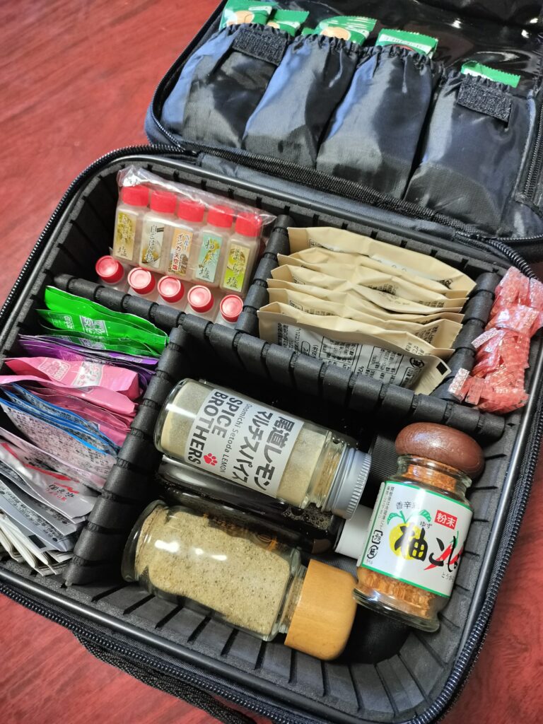 我が家は食べること大好き家族なので調味料セットも持って行きます♪