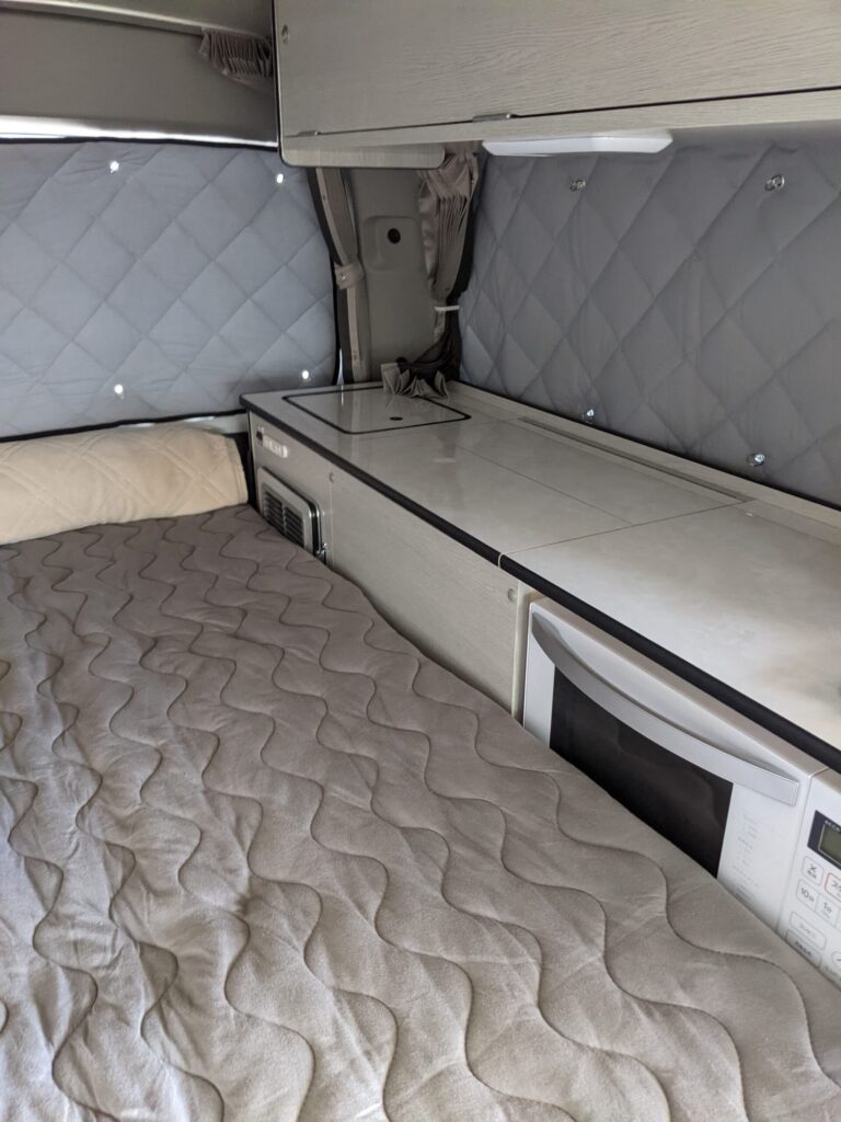 \まるで家のベッドで寝ているような安心感で、RVパークの夜が熟睡タイムに変わりますよ。/
