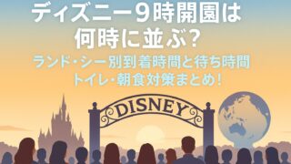 旅行ディズニー9時開園は何時に並ぶ?ランド・シー別到着時間と待ち時間・トイレ・朝食対策まとめ! 「ディズニーが9時開園の日って、みんな何時ごろ並んでるの?」「開園ダッシュしたいけど、早起きしすぎるのも大変…」 そんなふうに迷っていませんか? 結論から言うと、9時開園の日は【7時30分〜8時00分】には到着・整列しておくのが理想です。特... 2025.10.19旅行