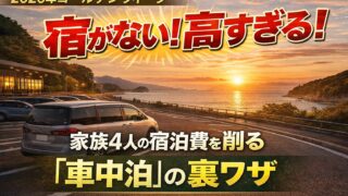 2026年GWの宿不足に絶望していませんか?家族4人で1泊10万円超えのホテル代をガツンと削る「逆転の車中泊旅」を8年の経験者が伝授!全国の穴場RVパーク検索法から、ポータブル電源等の必須装備まで徹底解説。予約に縛られない自由な冒険を始めましょう。
