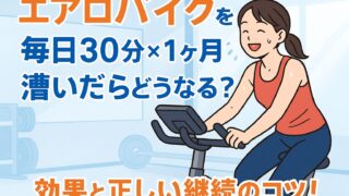 ダイエット【徹底解説】エアロバイクで効果が出るまでの期間は?【体脂肪が減るまでのロードマップ】 エアロバイク(フィットネスバイク)を漕ぎ始めて、 「いつになったら痩せるの?」「効果が出るまでどれくらいかかるんだろう?」 と不安に感じて検索されたのではないでしょうか? 結論からお伝えします。エアロバイクでダイエットや体質改善の効果が明確... 2025.10.16ダイエット健康
